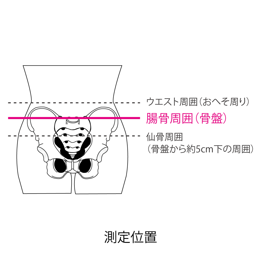 【腸骨周囲】XXL:110~130cm、XL:95~115cm、L:80~100cm