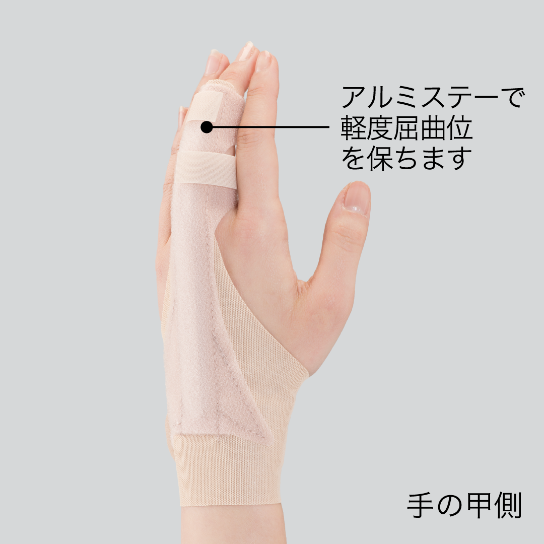アルミステーでしっかり固定する、第2~5指用固定サポーター
