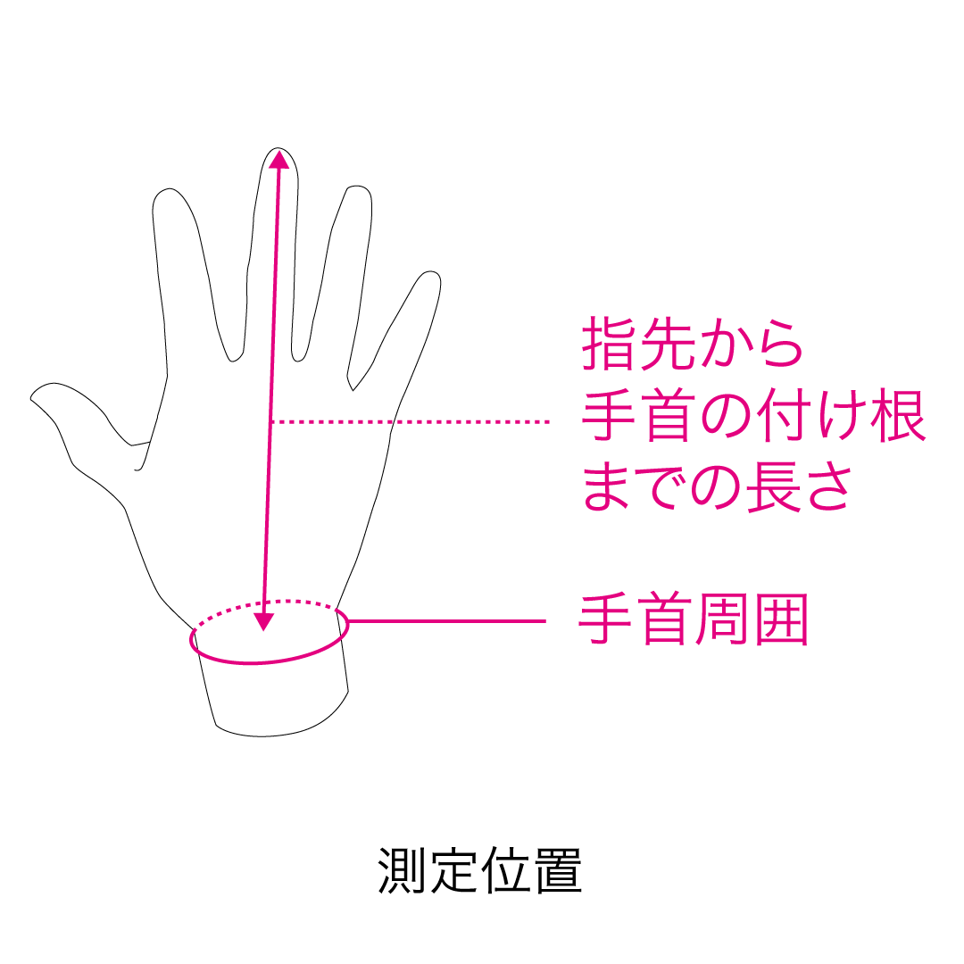 | 品番 | サイズ | 指先~手首 | 手首周囲 |