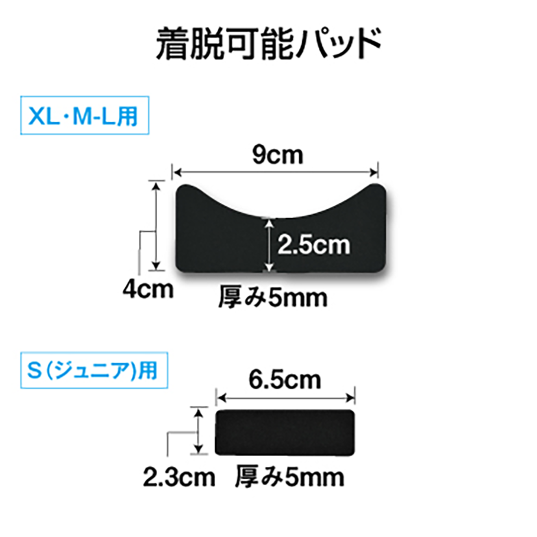 【膝上10cm周囲】 XL(LL):45~60cm、M-L(フリー) :35~48cm、S(ジュニア):27~35㎝