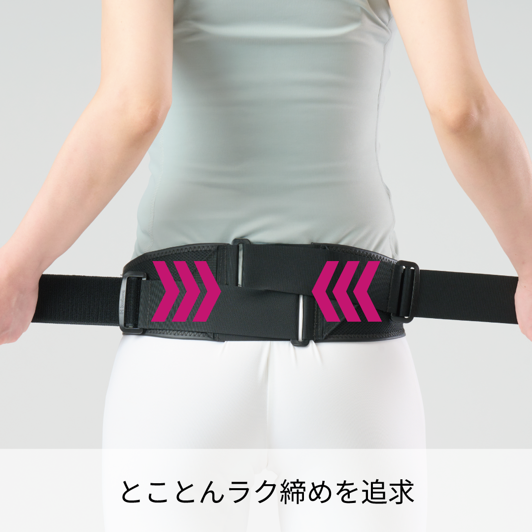 ・女性やお年寄りの方など力が弱い方でも軽い力で装着でき、骨盤をしっかり固定