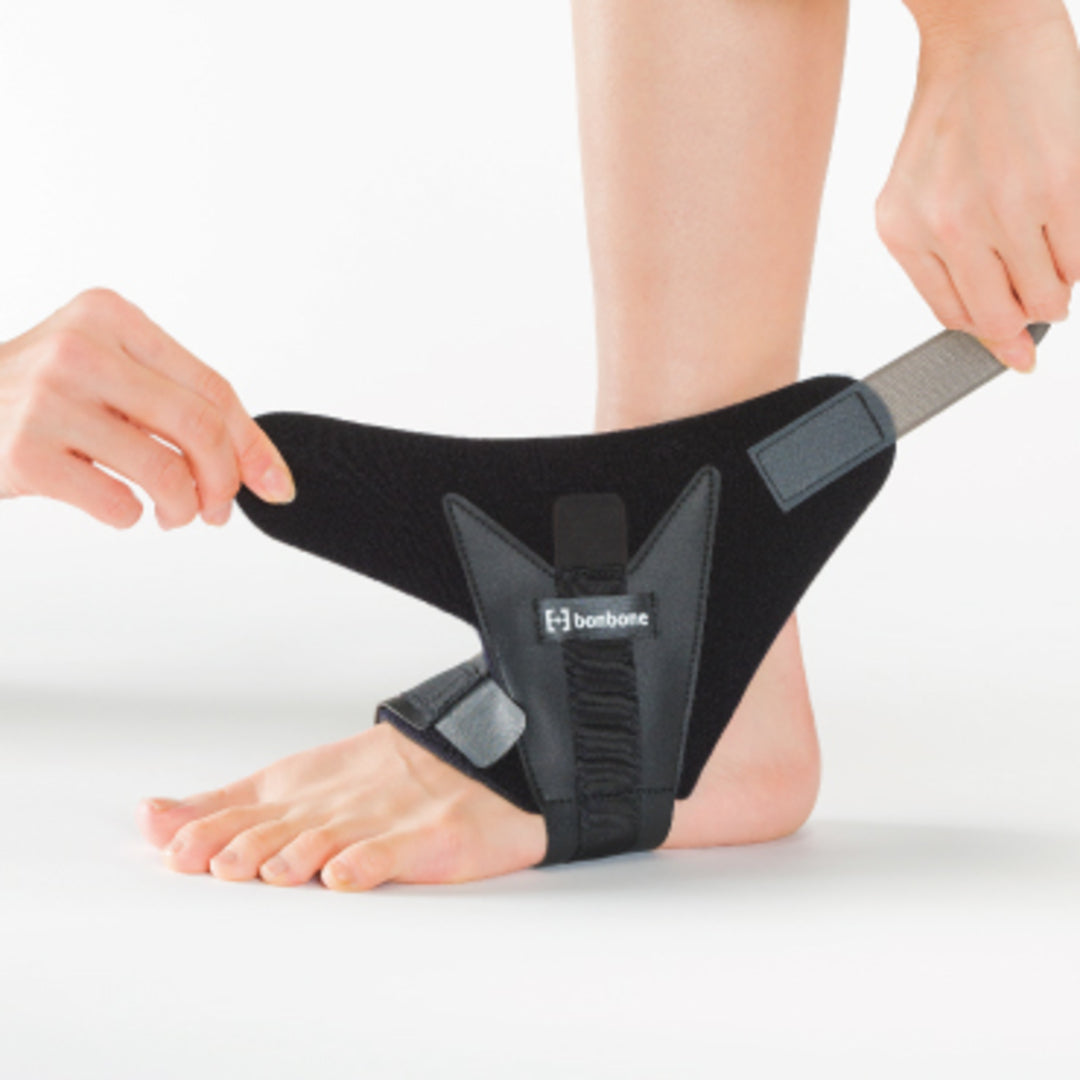 ◆開発コンセプト/底背屈制限を全く行わず、捻挫に一番多い内反捻挫のみに可動域制限を加えたい。特に内反制限はしたいが、足先制限せず動かしたいサッカー選手等にご利用いただきたいと考えました。