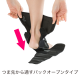 ・つま先から通すバックオープンのセミオープンタイプのため装着が簡単