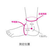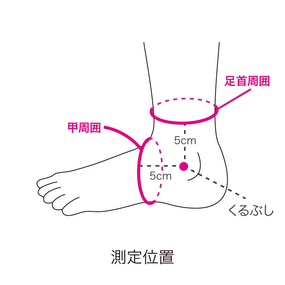 【足首周囲】L:20~26cm、M:19~25cm、S:18~24cm