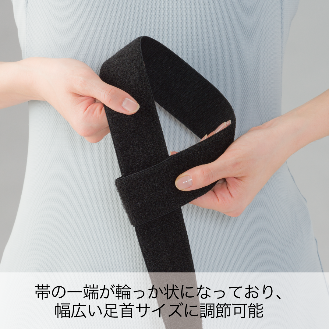 ・帯の一端が輪っか状になっているので幅広い足首サイズに調節可能
