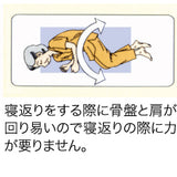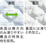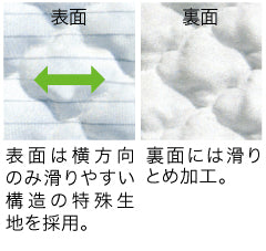 表面は横方向のみ滑りやすい構造の特殊生地を採用しているので、寝返りをする際に骨盤と肩が回りやすく、寝返りがラクに行え、横方向にすばやく軽くベッドの上を移動できます。