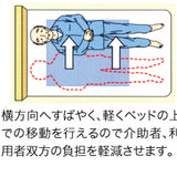 楽々スライドマットは体位変換時の介護者・利用者の負担を軽減する、常に敷いて手間なくご使用いただける便利なスライドマットです。