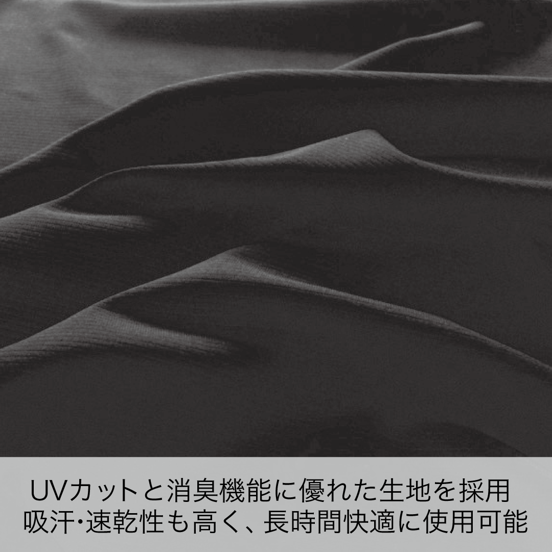 ・腕を広範囲に覆う本体生地には、UVカットと消臭機能を採用