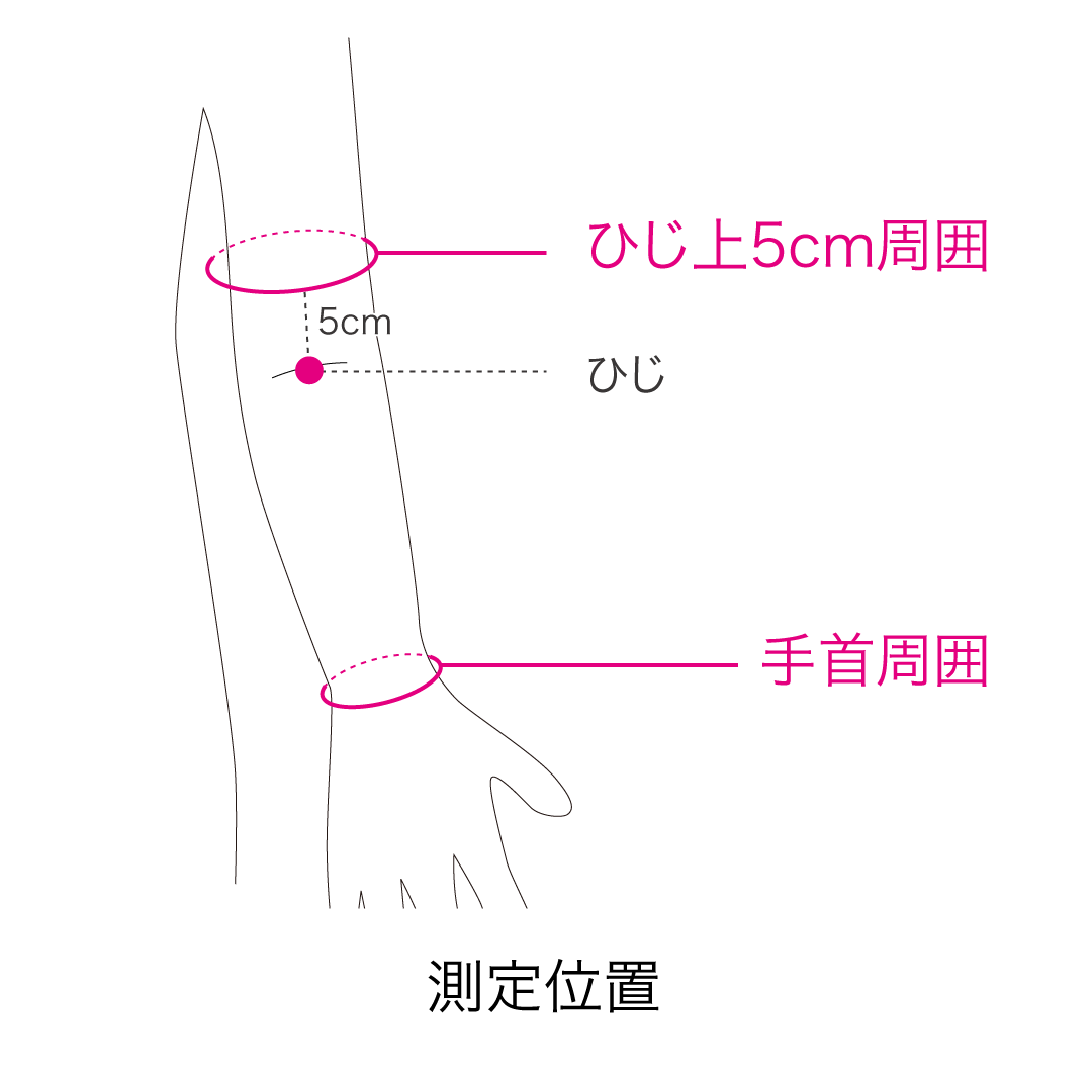 | 品番 | サイズ | ひじ上5cm周囲 | 手首周囲 | 入数 |