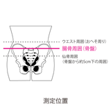 ※採寸位置は「ウエスト」ではなく「腸骨周囲 (骨盤の周囲)」をお測りください。ウエストで選ぶとサイズが小さく、装着できない場合もございます。