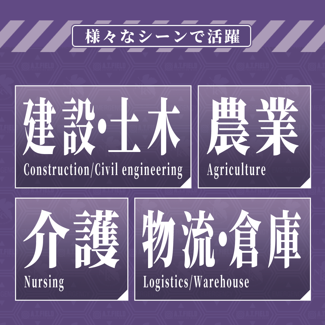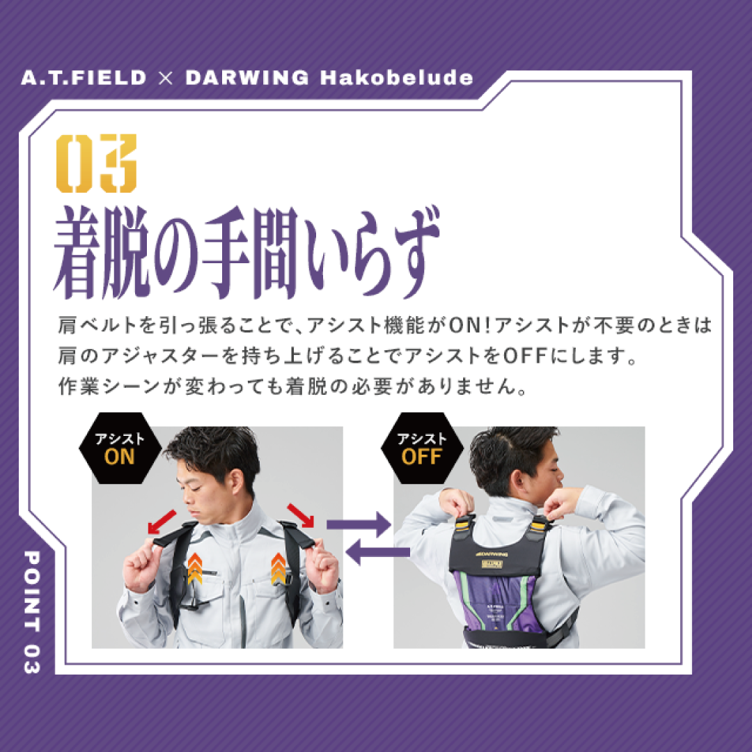 ダイヤ工業の大人気アシストスーツ「DARWING Hakobelude」が エヴァンゲリオンの世界観を取り入れた ワークブランド「A.T.FIELD」とコラボ。
