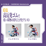 DARWING Hakobeludeは電力や硬いフレームを使用しないウェアラブルなアシストスーツです。