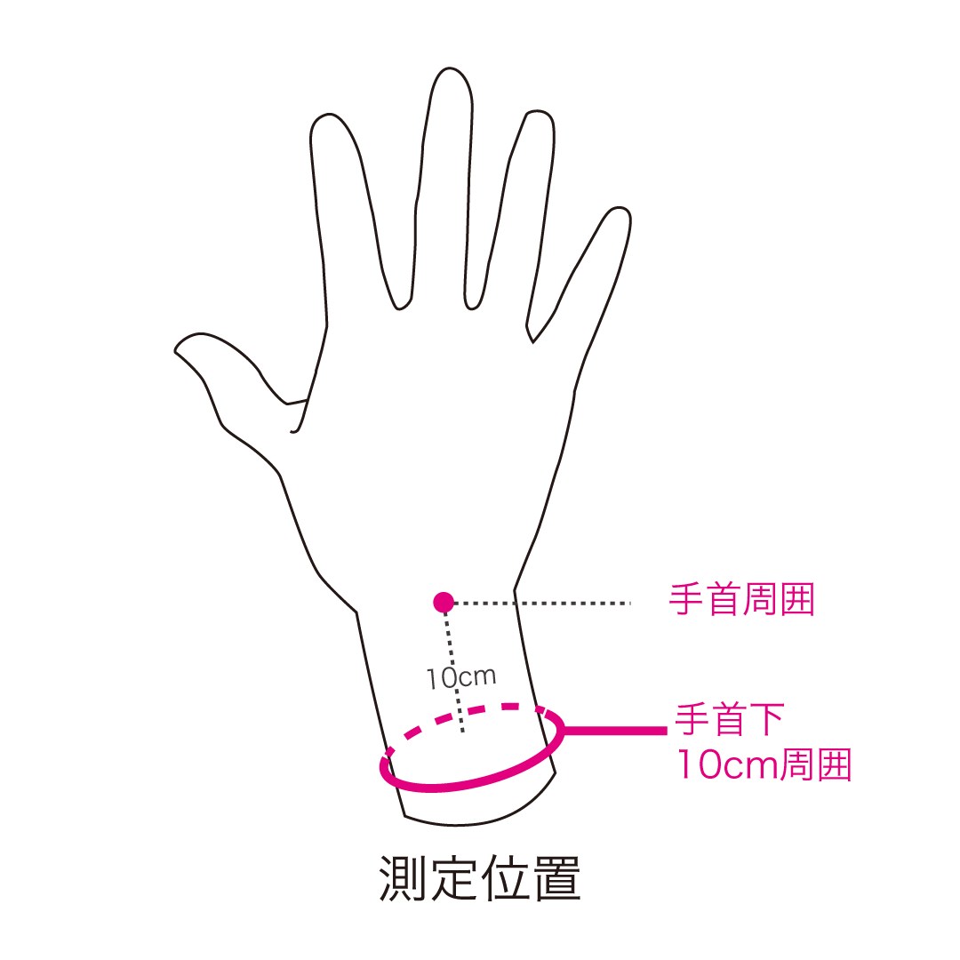 【手首下10㎝周囲】19‐23㎝、M:16‐20㎝