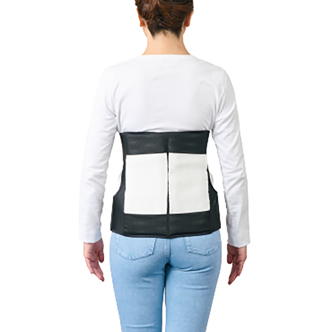 ・コルセット背部のギプスポケットにギプスシーネを入れることで、コルセット前面のフロントステーとともに腰の動きを制限する
