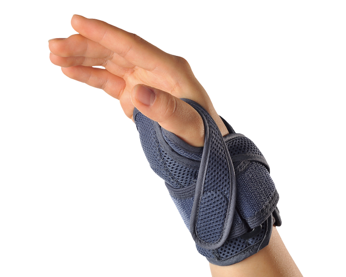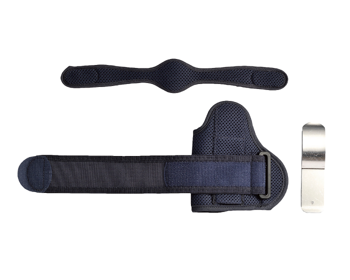 付属のアルミステーやマルチストラップの併用により、手関節の動揺を低減します。