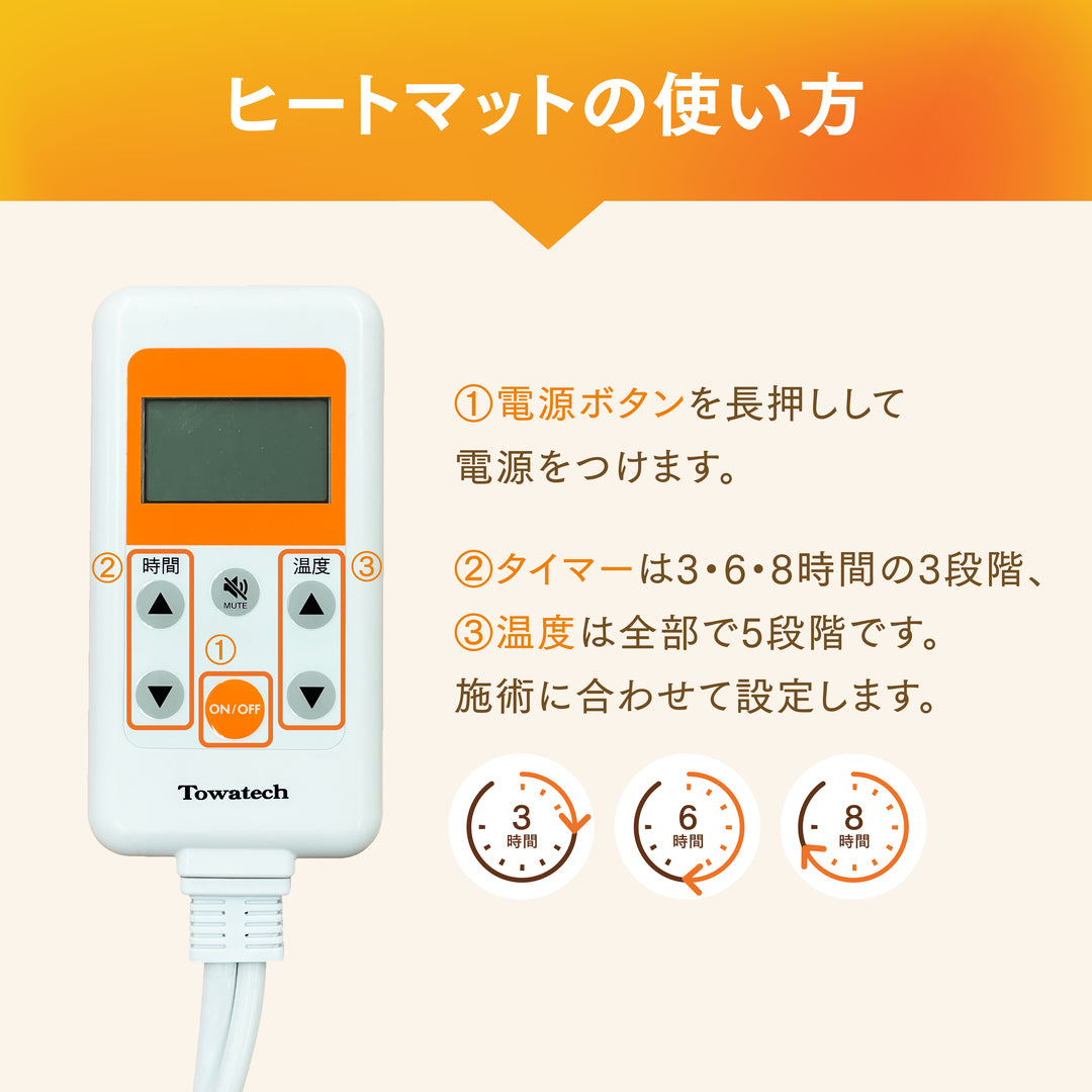 ・ヒートマットの表面にマッサージオイルなどを付着させないようご注意ください。