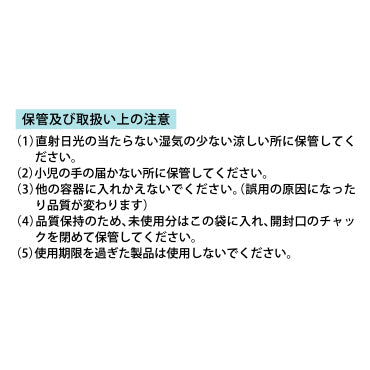 (4)品質保持のため、未使用分はこの袋に入れ、開封口のチャックを閉めて保管してください。