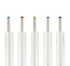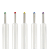 鍼柄にカラーキャップを取り付けており、太さを認識できます。