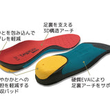 インソールのアーチ部分は硬質素材を使用しておりアーチの形成が期待でき 衝撃による負担がかかる踵部分は