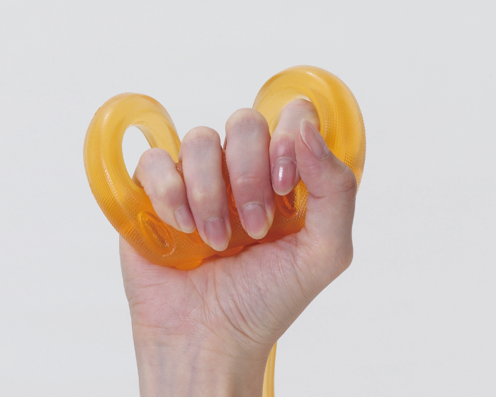 チューブの持ち手は握って手・指の運動ができるグリップになっています。