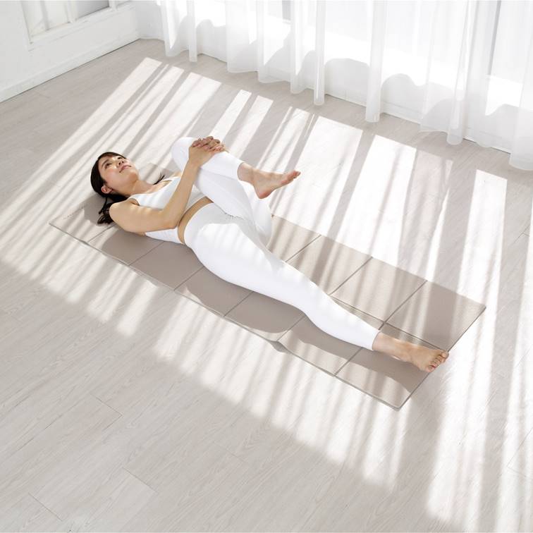 高いクッション性で様々な動きをサポートする折り畳み式ヨガマット