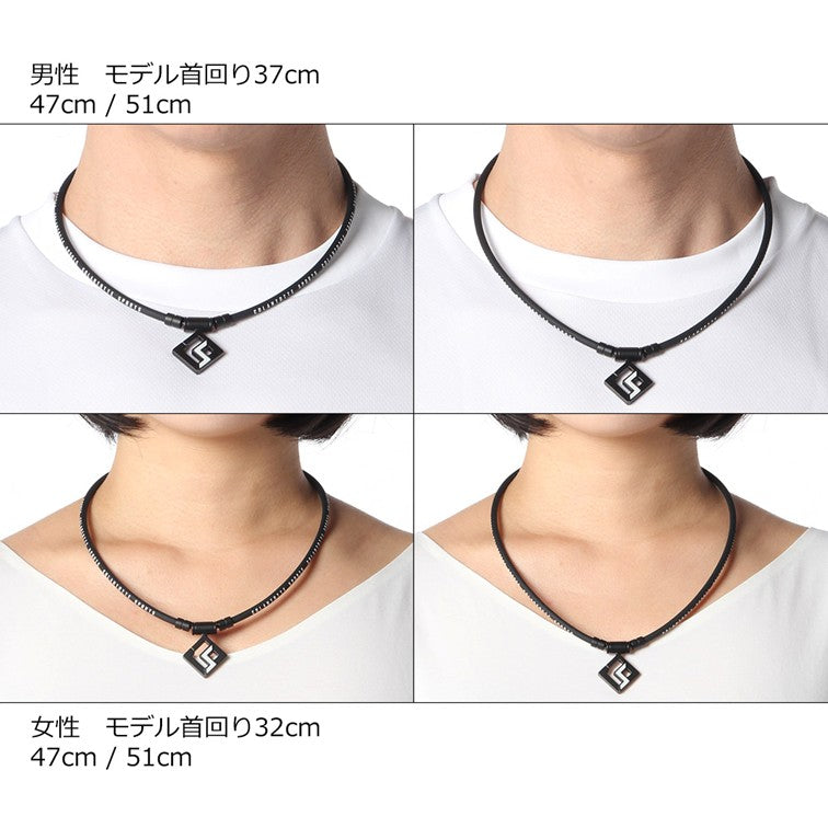 材質:ネックループ部分/シリコン、磁石/希土類永久磁石(160ミリテスラ×14個・N極S極交互配列)、トップ・ジョイント/純チタン(イオンプレーティング)