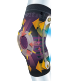 膝蓋骨や側副靭帯周辺へのテーピングを再現したサポーター。