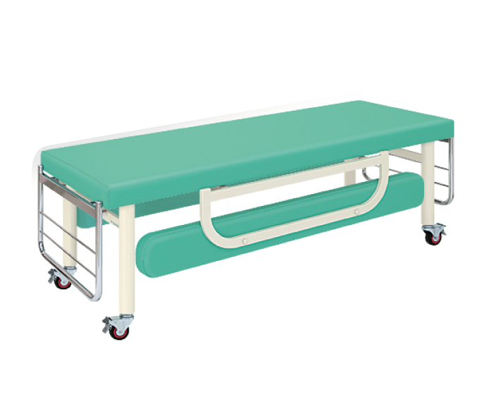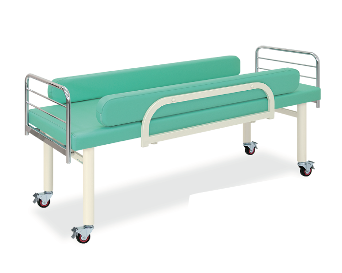 激しい施術でも安心感を与える転落防止ワイドレザーガード2本付のベッドです。