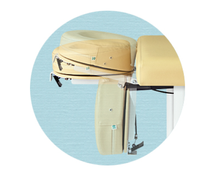 フェイス型ヘッドガスシリンダー式角度調節機能(15~-90°)付ベッドです。