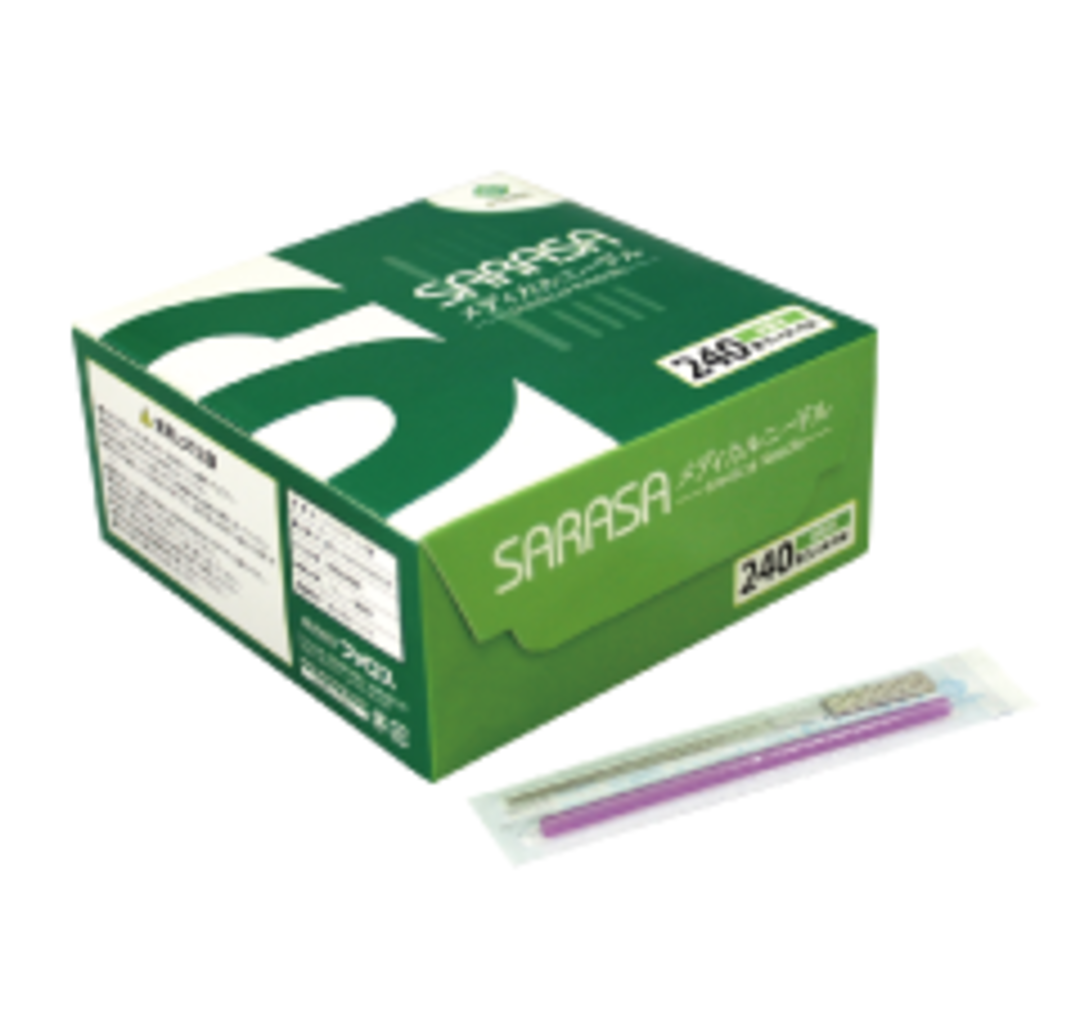 SARASAディスポ鍼は、美容外科の現場で使用されているフランス生まれの『マジックニードル』という注射針の技術を鍼灸鍼に応用できないか研究を重ね、誕生した、患者様に 『 やさしい鍼 』 となっております。