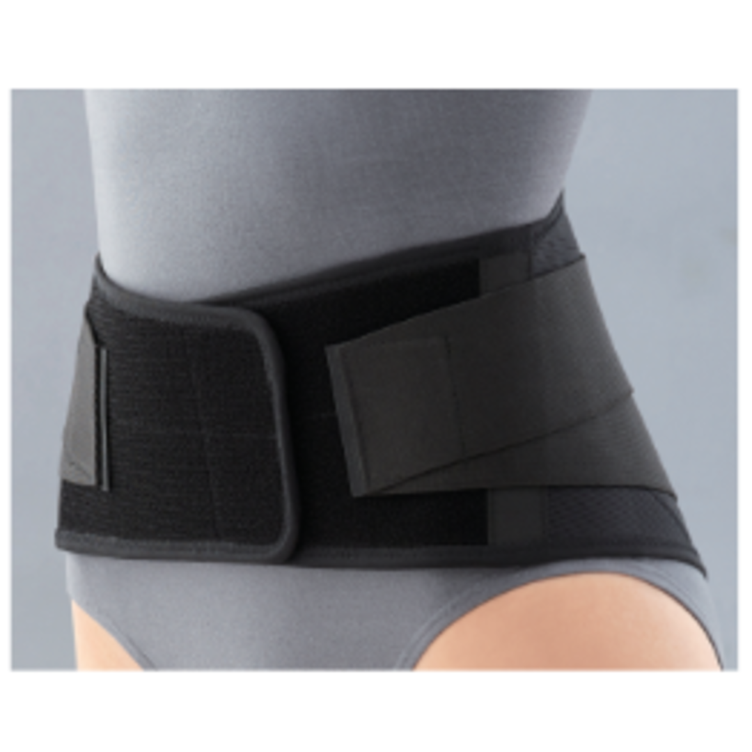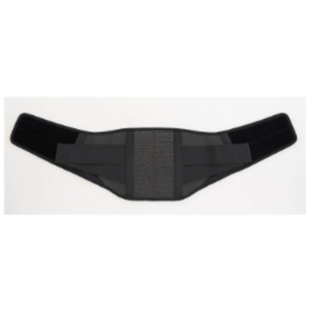 圧迫力を補強する補助ベルト付き。背当て部と前合わせ部に硬質メッシュ素材を採用し