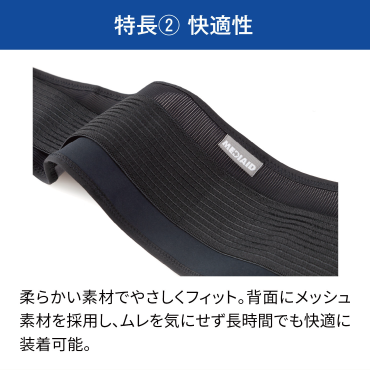 伸縮性のある骨盤サポートベルトで骨盤周りをしっかりサポート。