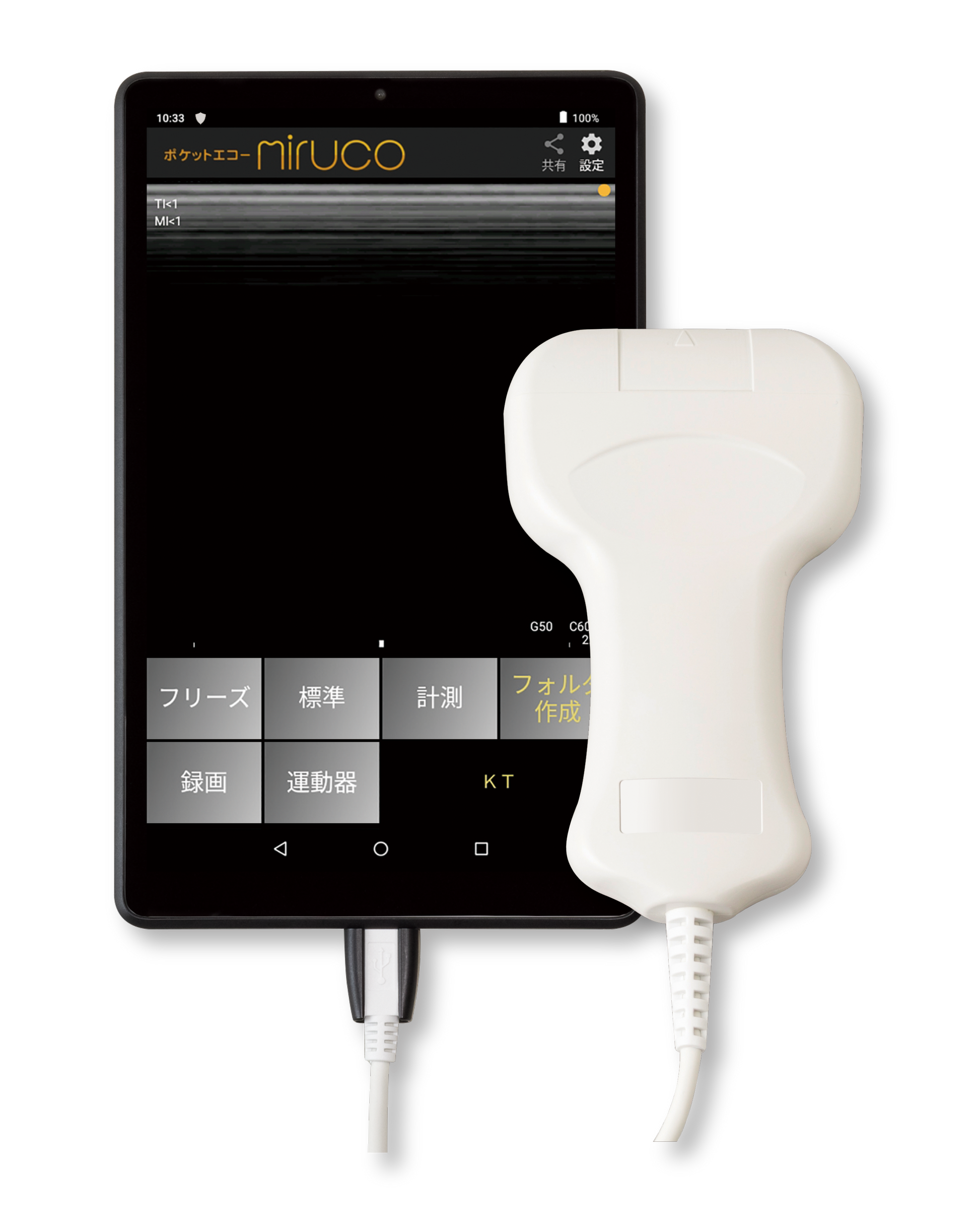 プローブは深部向きの3.5MHzコンベックスプローブと、浅部向きの10MHzリニアプローブの2種類