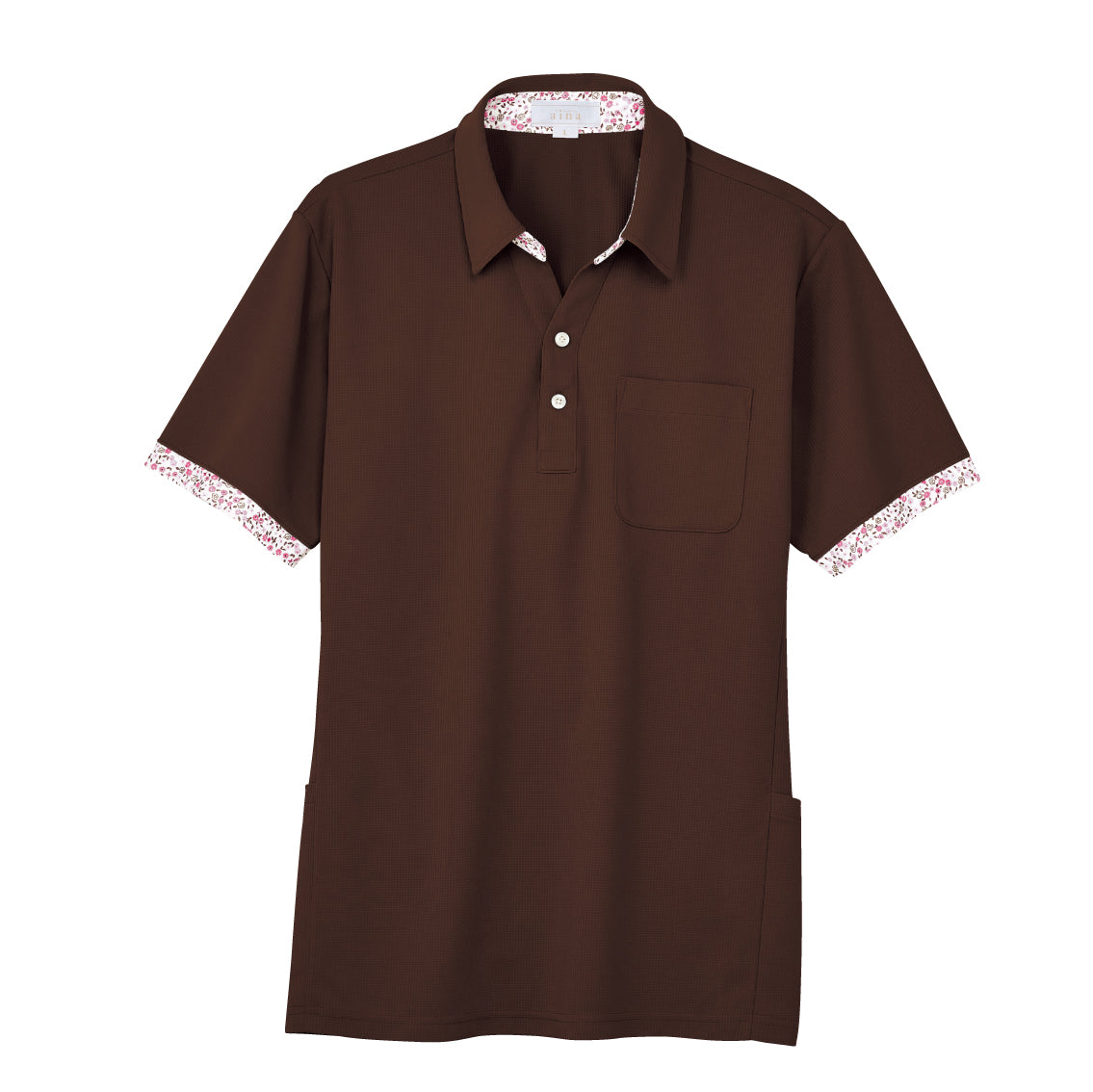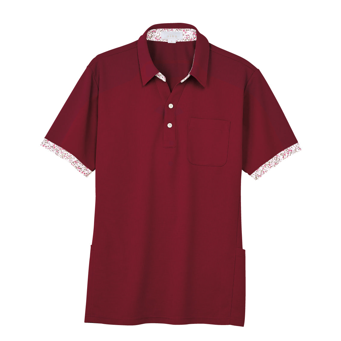 首元がスッキリのスキッパー衿と可愛らしい小花柄がアクセントのニットシャツ