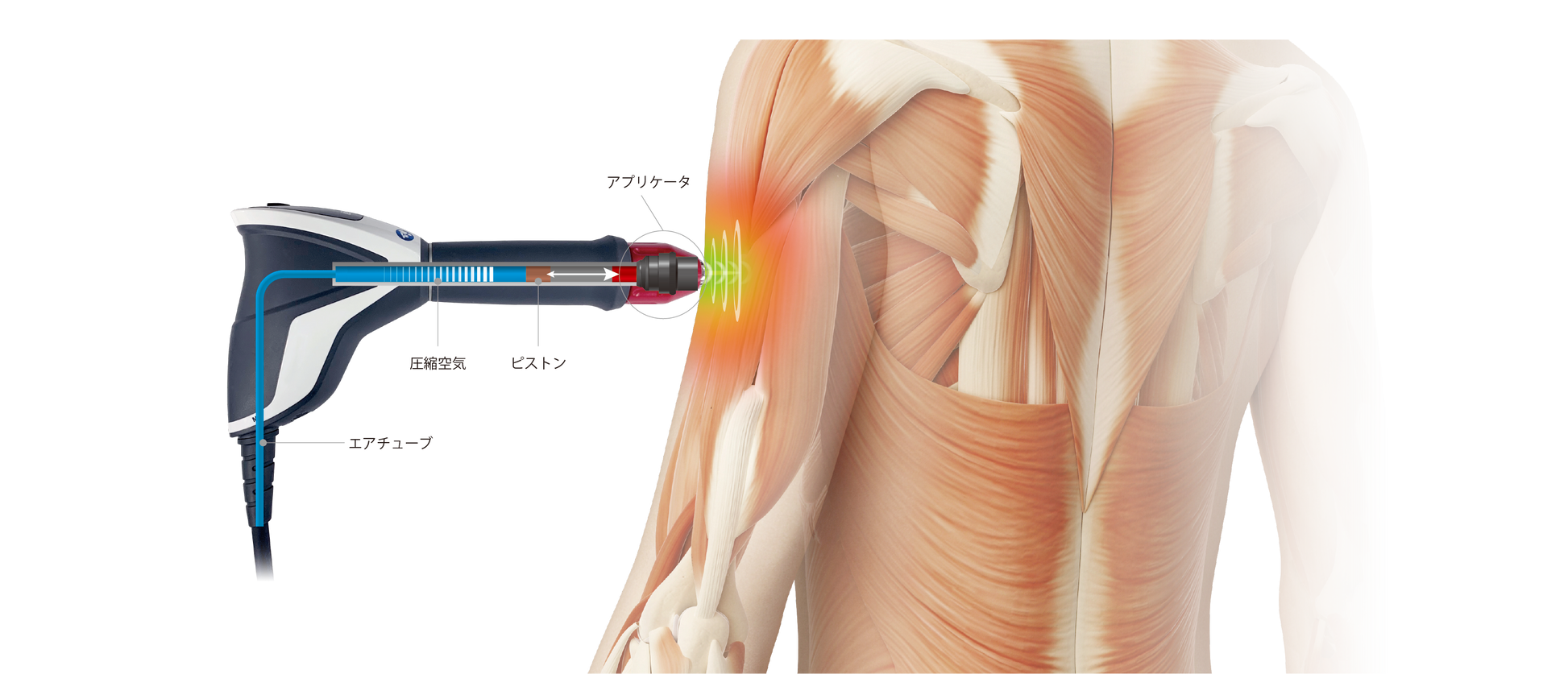 世界65カ国で使用されていた圧力波(拡散型ショックウェーブ)が 2015年に日本で初めて承認され、「ショックマスター」は、 臨床・スポーツフィールドに新たな治療の選択肢をもたらしました。